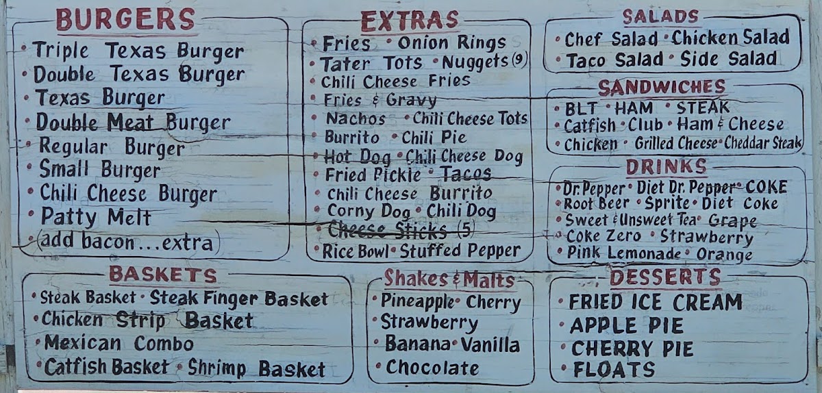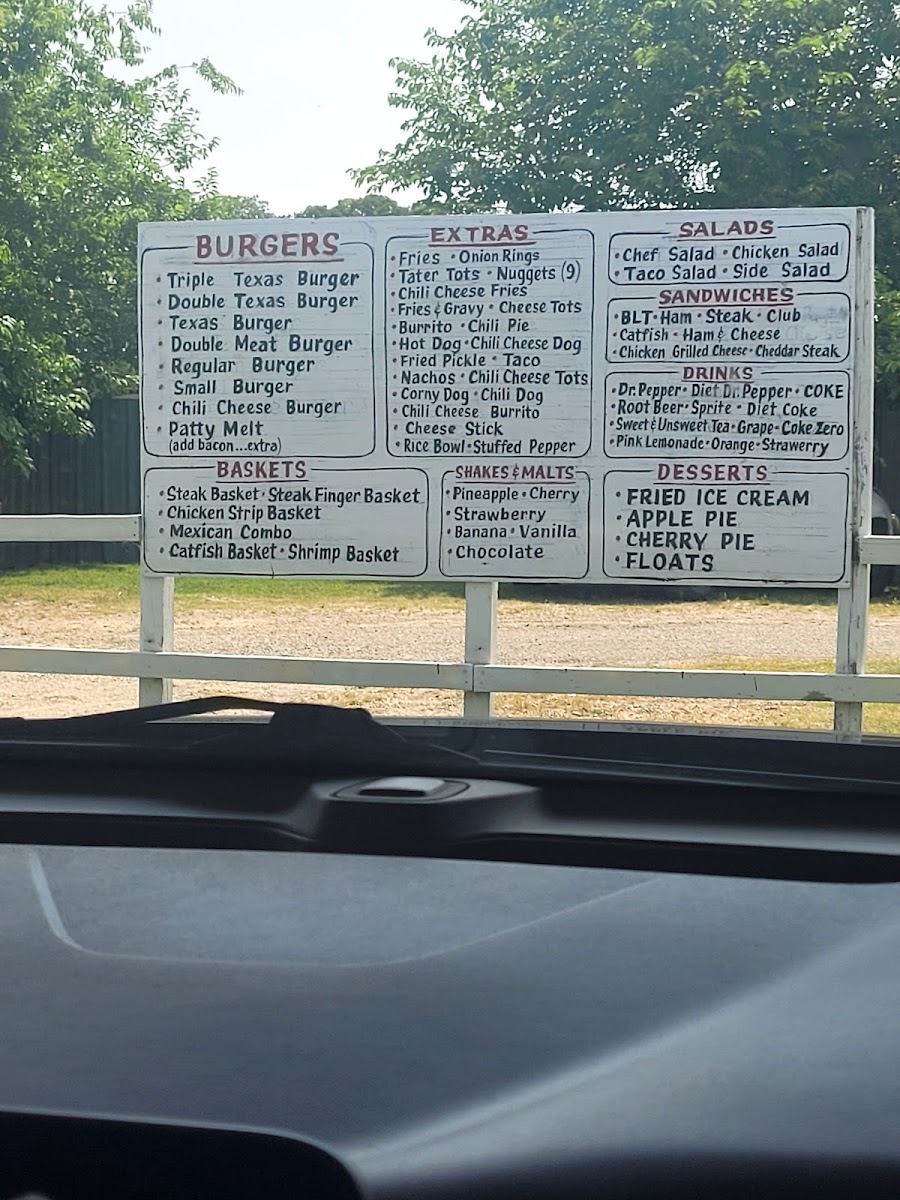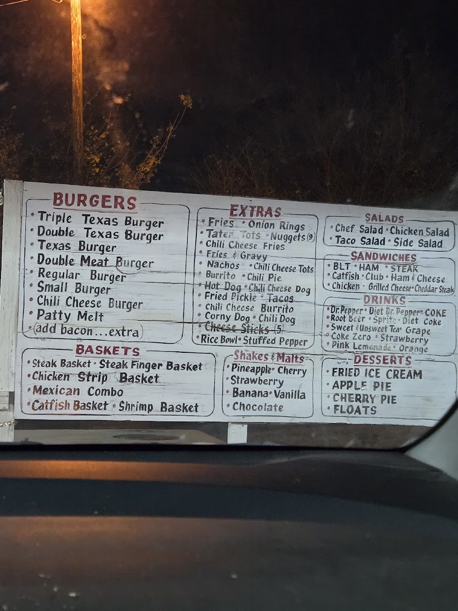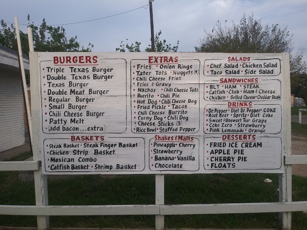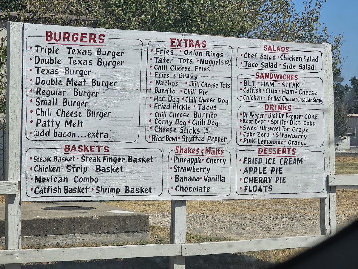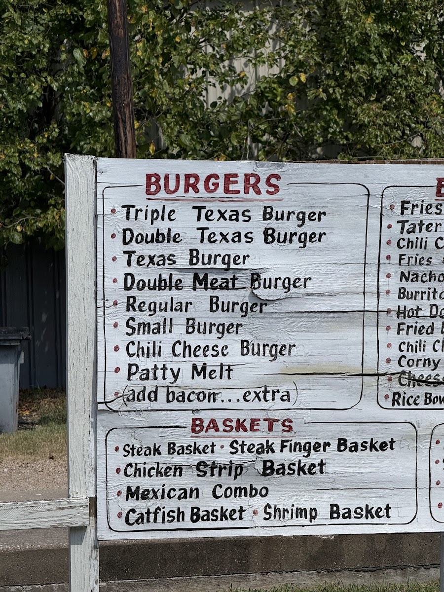 Popular choices include everything from stacked burgers like the Double Bacon Cheeseburger and the Triple Texas Burger with Cheese, to lighter options like salads and crispy chicken strips. The menu also features a selection of sides such as French fries, fried pickles, and onion rings that complement the main dishes perfectly.